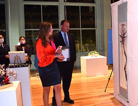 10月20日の夕刻より実施された開催記念セレモニーでは、カーネギー・ホール総支配人兼芸術監督クライヴ・ギリンソン氏、在ニューヨーク日本国総領事館広報センター所長の村上顯樹氏、同館領事の谷合正成氏、9・11教育トラスト総理事マイケル・デンプシー氏、セプテンバーズ・ミッション創始者モニカ・イケン氏らにご来場いただき、日本から渡航されたアーティストの皆様とともに両国の芸術文化交流が実施されました。また、カーネギー・ホール9階屋上テラスでの植樹や、カーネギー・ホール公式サイトに、ご出展アーティストのフルネームを掲示いただくなど、様々な形で9・11追悼の意を表することも叶いました。
